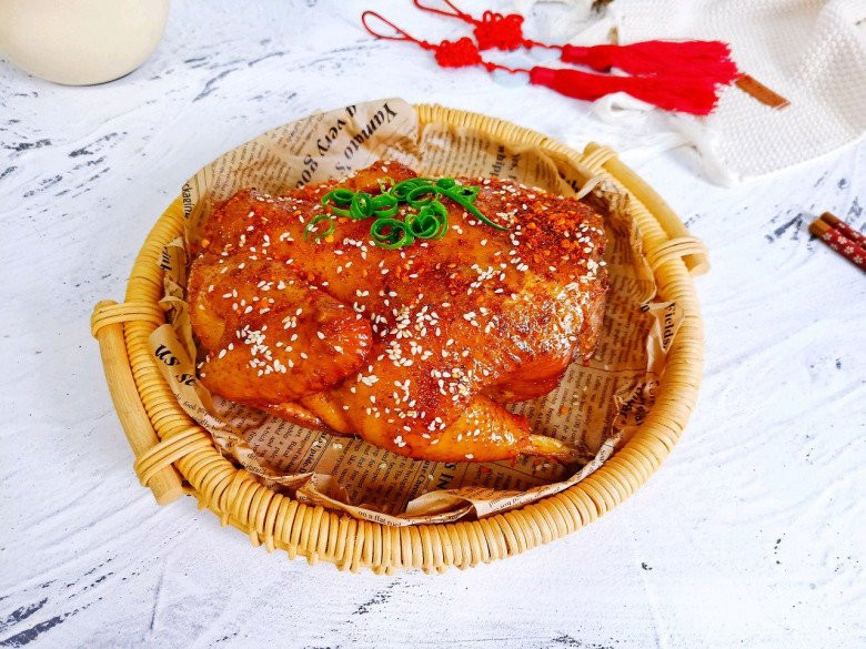 - Cuối cùng, rắc ớt bột và hạt vừng rang lên gà và nướng trong khoảng 5 phút là xong.