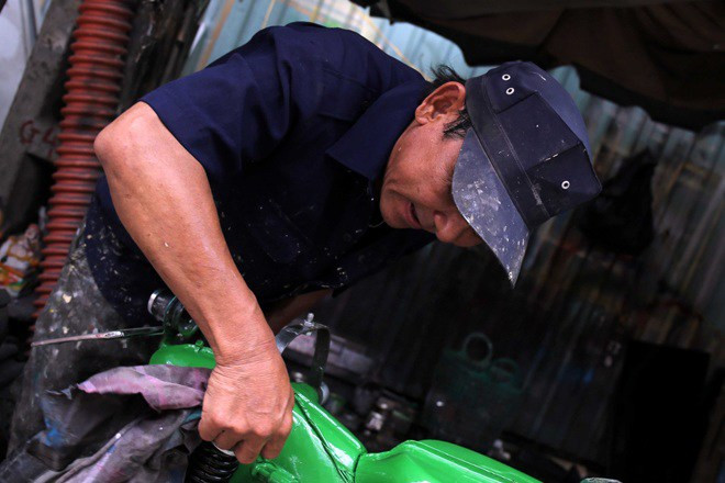 Thành thạo nghề, anh Đ chọn một góc tại chung cư Nguyễn Kim mở tiệm sơn sống qua ngày. Anh không kiếm được nhiều tiền nhưng cũng đủ để hai vợ chồng cơm cháo qua ngày.