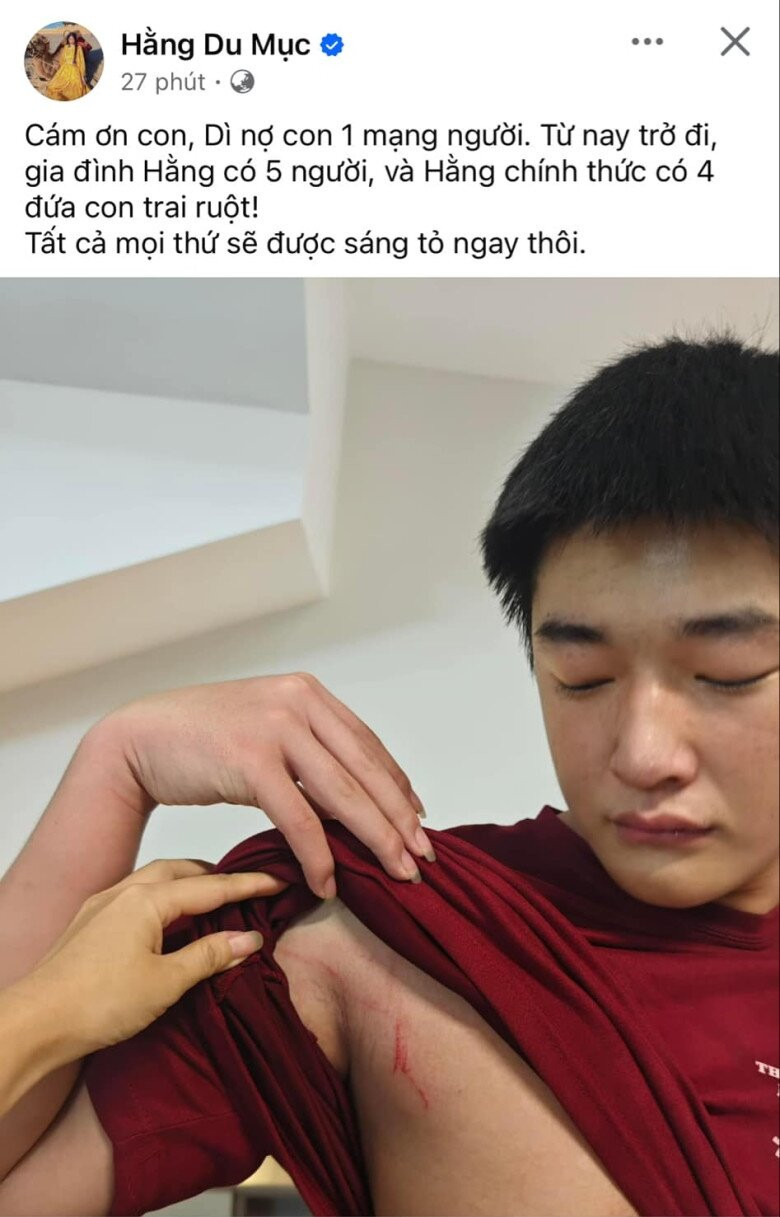Hằng Du Mục chia sẻ hình ảnh con trai riêng của chồng bị thương.