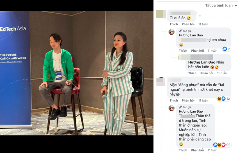 Tuy nhiên, quý cô lại có vẻ như rất thoải mái và dí dỏm với set đồ của mình. Cô nàng còn đáp trả lại lời bình luận: "Mặc đồng phục mà vẫn được tại ngoại lại xinh thế này mới khét này chị này" rằng: "Thân thể ở trong lao, tinh thần ở ngoài lao. Muốn nên sự nghiệp lớn, tinh thần phải càng cao".