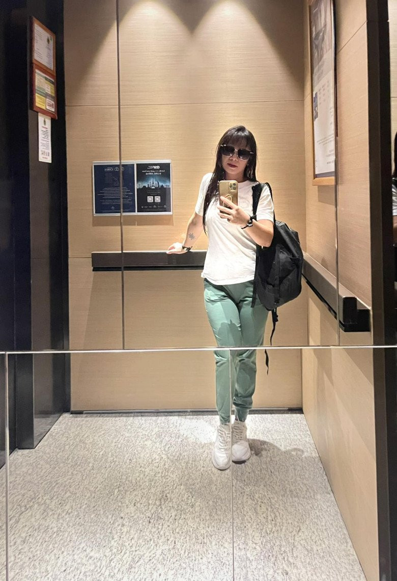 Khi nhìn vào tấm ảnh check in trong gương ở trong thang máy trên, nếu không nhìn vào tên nick Facebook của quý cô, có lẽ khó lòng dân tình nhận ra, đó là Đào Lan Hương. Cô diện 1 combo cá tính với chất thể thao khoẻ khoắn là quần bóp côn, giày thể thao mix & match với áo thun trắng. Cô còn không quên tô điểm vẻ phóng khoáng cho bản thân khi đi công tác với chiếc balo đen đậm chất du lịch bụi.