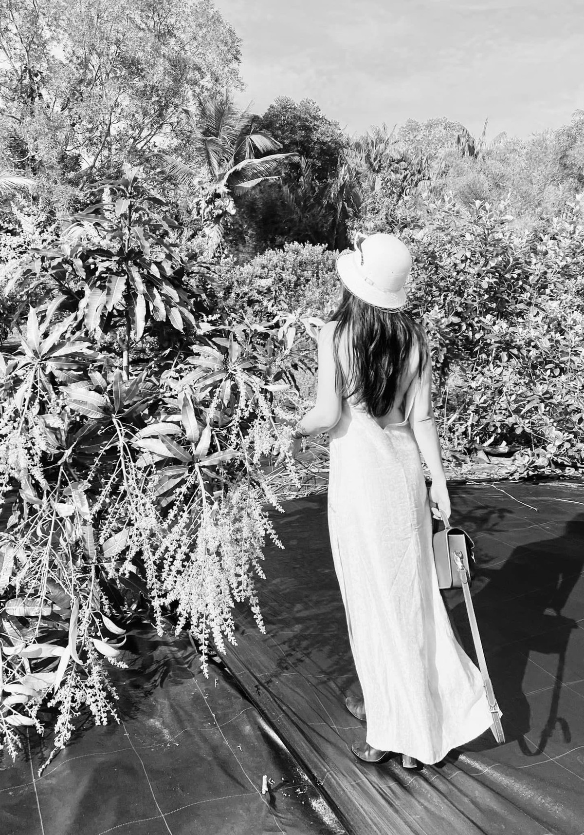 Người có khối kiến thức uyên bác cùng tài lãnh đạo thường có cách khoe dáng cực tinh tế. Nữ doanh nhân thậm chí còn để hình đen trắng với những bộ cánh có độ cắt xẻ mạnh tay như hở lưng.