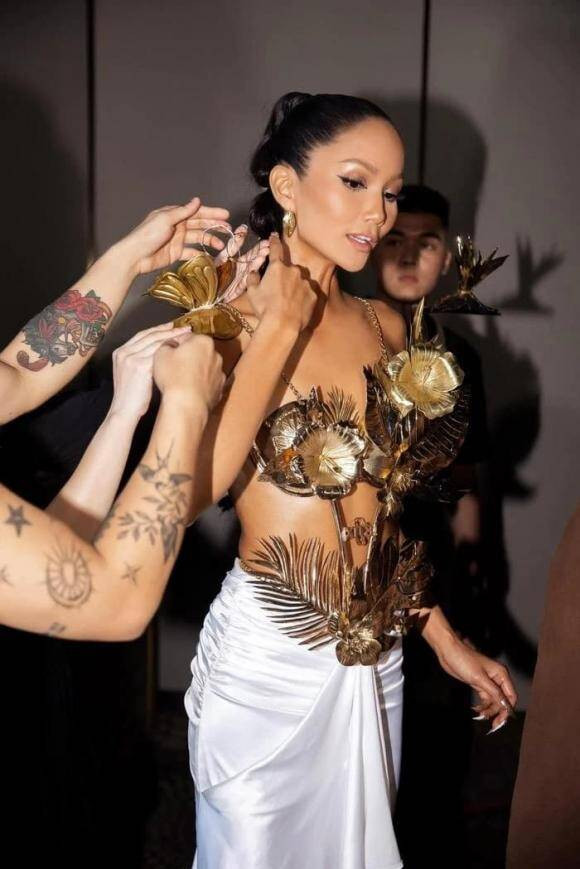 Nàng hậu chọn cho mình chiếc váy xoè như công chúa, cúp ngực cùng phần khăn choàng để che chắn vòng eo. Hình ảnh H'Hen Niê đang viral trên mạng xã hội nhanh chóng, với thông tin cô đang có em bé. Hiện nàng hậu vẫn chưa lên tiếng đính chính hay phản hồi gì về những nhận định trên.