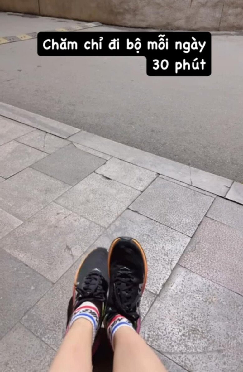 Giữ nếp sống điều độ từ trước đến khi mang thai, Ngọc Hân vẫn tiếp tục duy trì những thói quen sinh hoạt lành mạnh, giúp cơ thể khỏe mạnh và tinh thần luôn tươi mới. Mới đây, mẹ bầu chia sẻ: "Chăm chỉ đi bộ mỗi ngày 30 phút". Không cần phải đến phòng gym hay những bài tập nặng nề, chỉ một buổi đi bộ nửa tiếng mỗi ngày cũng đủ để Ngọc Hân duy trì vóc dáng cân đối, lại tốt cho tuần hoàn máu, giúp thai nhi nhận đủ oxy.