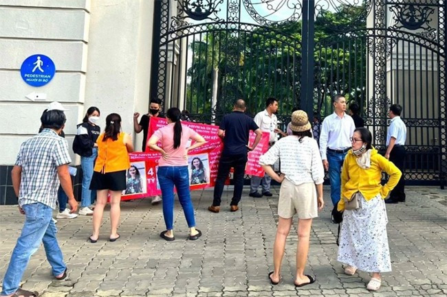 Một số phụ huynh cầm theo băng rôn đòi nợ trường AISVN hồi tháng 9/2023