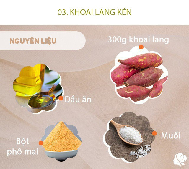 Chuẩn bị: 1 củ khoai lang khoảng 300 gr (nên dùng khoai lang bở) - 35-40 gr bột năng hay tinh bột bắp, 1 muỗng canh bột phô mai hay phô mai đầu bò (hoặc phô mai nào bạn có sẵn); 1 chút xíu muối, 10 gr đường nếu khoai lang không ngọt