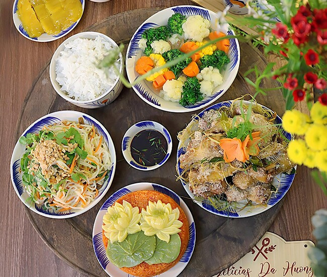 Tham khảo mâm cơm nhà chị Vũ Thu Hương để có thêm ý tưởng cho mâm cơm nhà mình. Bữa ăn này gồm có: