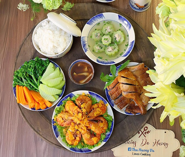Tham khảo mâm cơm nhà chị Vũ Thu Hương để có thêm ý tưởng cho bữa cơm nhà mình. Mâm cơm này gồm các món: