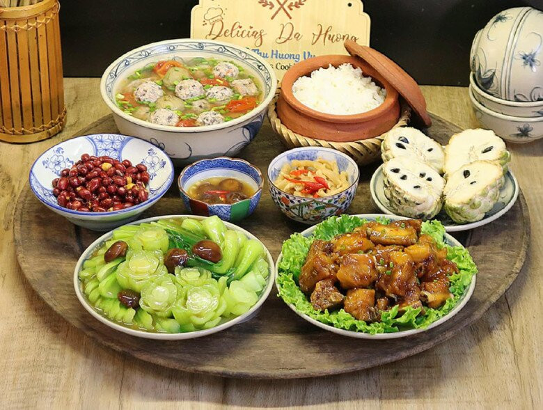 Mâm cơm gồm nhiều món ăn đơn giản nhưng rất hấp dẫn, đảm bảo ai cũng thích.