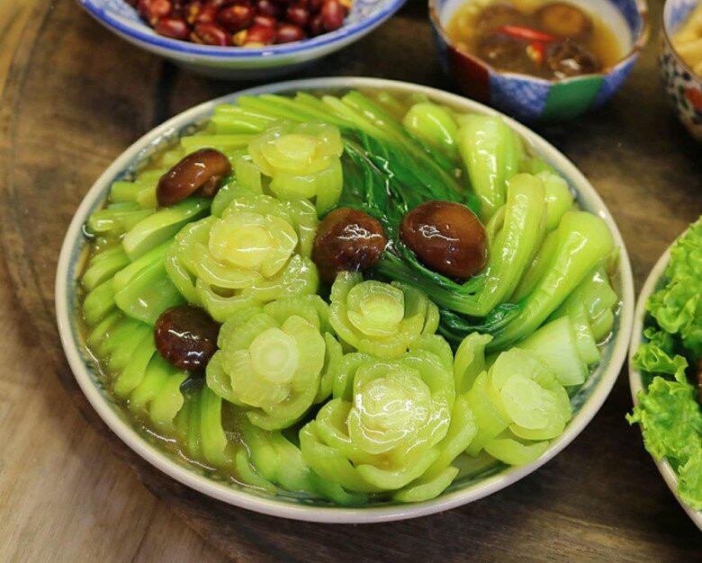 Chuẩn bị: 500g cải chíp rửa sạch, 5 cái nấm hương tươi rửa sạch, dầu ăn, dầu hào, 2/3 muỗng canh bột năng, dầu hào, muối, tỏi.