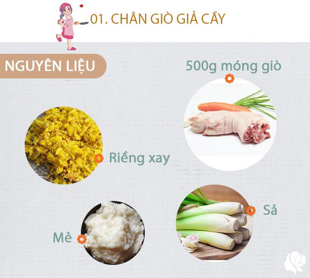 Nguyên liệu: - 500g móng giò, riềng, mẻ, sả, mắm tôm, bột nghệ, gia vị