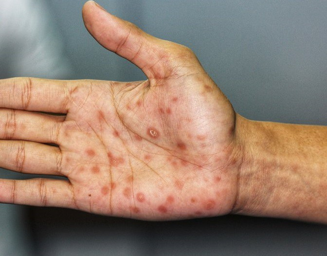 Hình ảnh tổn thương do bệnh giang mai trên tay bệnh nhân.