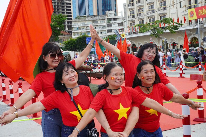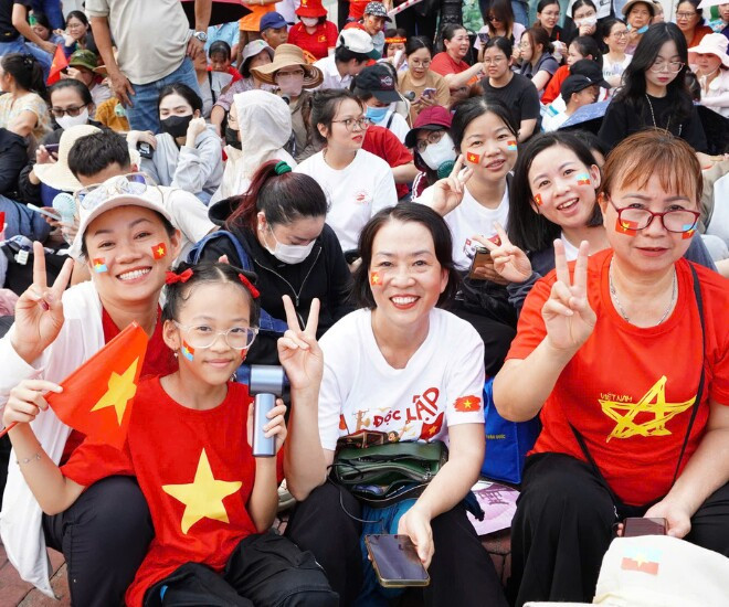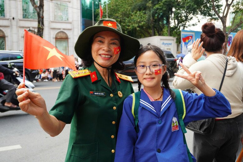 Không khí háo hức lan tỏa trên từng gương mặt. Nhiều gia đình tranh thủ đưa các em nhỏ đi cùng để cùng nhau hòa mình vào không khí thiêng liêng, tự hào của dân tộc.