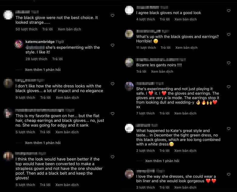 Nhiều người đánh giá cao cách cô làm mới chiếc đầm song lại chê kịch liệt đôi bông tai và đôi găng tay đen.