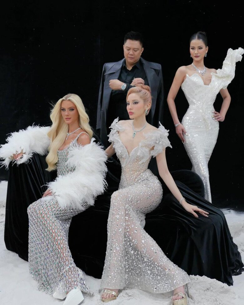 Kỳ Duyên, Hương Ly và Miss Universe 2024 Victoria Kjær Theilvig khoe nhan sắc rạng rỡ trong khung hình đậm chất thời trang.