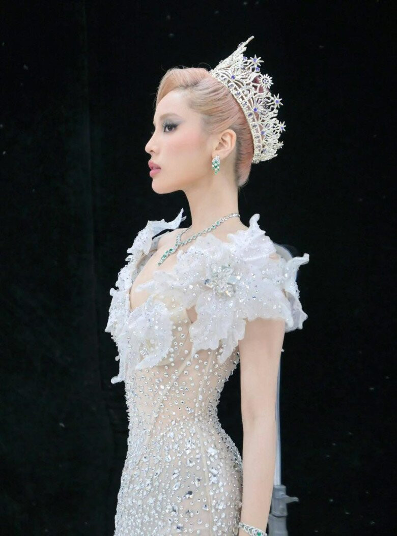 Vóc dáng nàng hậu vẫn đẹp đỉnh cao nhưng kiểu trang điểm và phần tóc lộ chân tóc của cô vẫn bị cư dân mạng đánh giá không phù hợp.