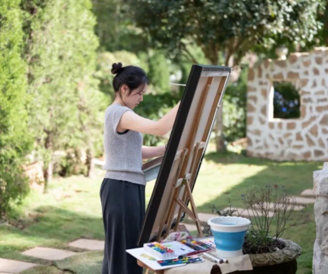 "Nghề vẽ tranh cưới chỉ mới phổ biến trong khoảng 2 năm trở lại đây", He Xuerong tốt nghiệp cử nhân chuyên ngành màu nước tại Học viện Mỹ thuật Hồ Bắc chia sẻ. Sau khi ra trường, cô từng làm giáo viên mỹ thuật, họa sĩ vẽ tranh tường và nhân viên tại các trung tâm đào tạo nghệ thuật. Đến năm 2023, cô bắt đầu làm nghề tự do và kiêm thêm công việc vẽ tranh cưới.