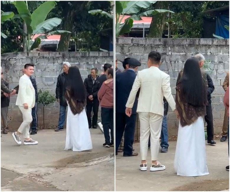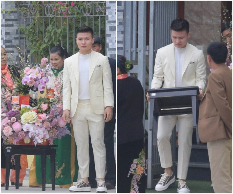 Bên cạnh thời trang của nam cầu thủ thì những hình ảnh được quay chụp bởi "team qua đường" tại hiện trường dạm ngõ cũng tiết lộ nhiều điều về phong cách của cô dâu.