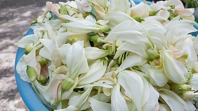 Bạn Thương nói thêm, bông so đũa ngon nhất nên hái vào buổi sớm mai, khi từng chùm hoa còn đọng hơi sương, nở oà trong ánh nắng mới lên, tinh khiết và trong trẻo. So đũa hái về nhặt bỏ cuống và chót nhụy đắng, rửa nhẹ trong nước để tránh bầm giập mất ngon.