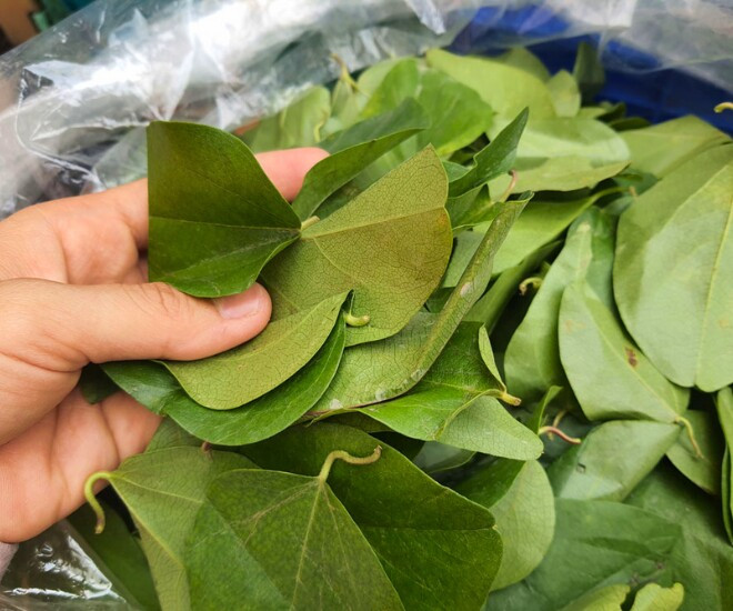 Vào những ngày thời tiết nắng nóng, nhu cầu tiêu thụ lá sương sâm trên thị trường tăng mạnh, giúp việc tiêu thụ sản phẩm càng thuận lợi.