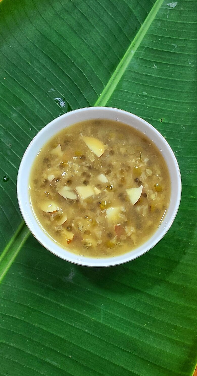 - Đậu xanh 50g ngâm và bắt lên bếp nấu cho mềm. liều lượng tùy số lượng người nhé.