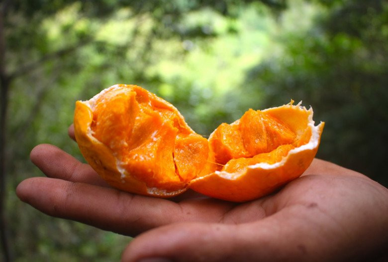 "Vì chúng là dạng dây leo nên không bị chặt phá nhiều như trái thanh trà. Những cây gùi lâu năm, gốc toả ra 4-6 dây to lớn như bắp tay người lớn, bám vào những cây gỗ cổ thụ trong rừng, vươn lên tận ngọn để sống và phát triển. Người hái quả gùi phải giỏi leo trèo, chỉ cần một chút sơ sẩy là rơi từ trên cao hàng chục mét xuống đất", bà Ánh nói thêm.