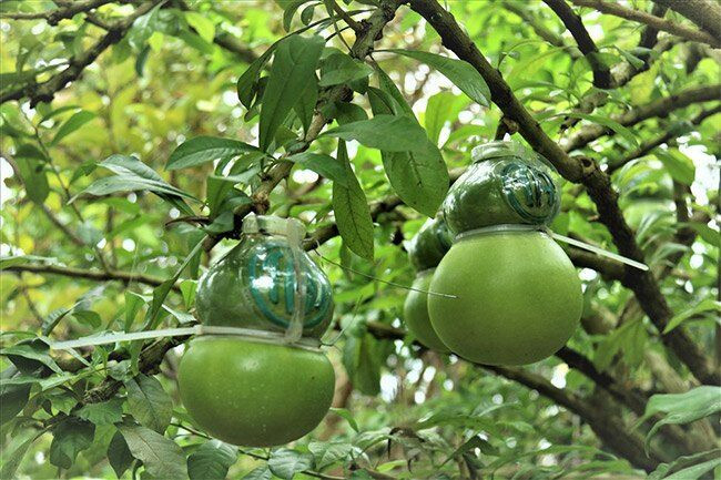 Khoảng tháng 10, tháng 11 hàng năm là thời điểm quả đào tiên vào mùa. Để có được những quả đào đẹp trưng Tết, đào phải nằm riêng trên một nhánh cây có cuống dài để khi cắt trái có thể kèm lá trưng trên bàn đẹp hơn. Ngay khi quả còn non phải được chọn lựa vào đưa vào khuôn thì mới ra được dáng thế đẹp mắt.