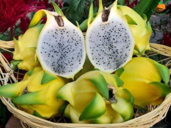 Về hình dạng bên ngoài, thanh long vỏ vàng có hình bầu dục, kích thước nhỏ hơn thanh ruột đỏ và vỏ đỏ ruột trắng. Thanh long vỏ vàng có vị ngọt thanh, giòn như thạch. Phần ruột sát vỏ có vị chua nhẹ. Thanh long vàng còn có một mùi hương rất khác biệt được một số người nhận xét giống mùi của quả nhãn.
