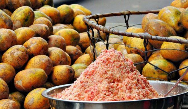Trong các món ăn vặt chị em thành phố yêu thích những năm gần đây có quả cóc. Quả cóc có phần thịt bên trong khá giòn và vị chua đặc trưng.