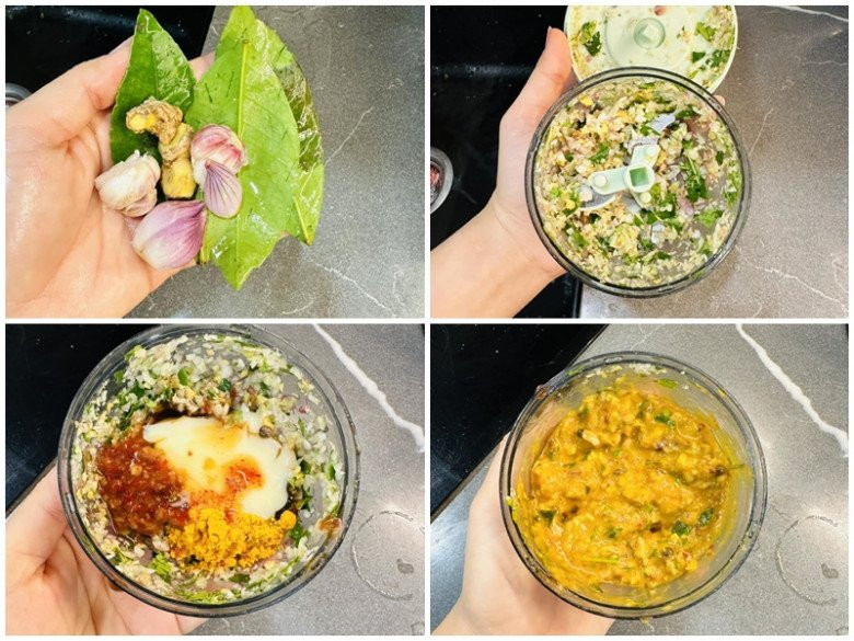 Xay tất cả các nguyên liệu làm sốt ướp gà cho thật nhỏ.