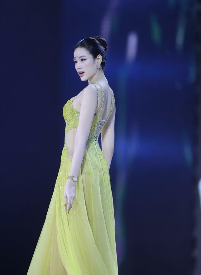 Mỹ nhân Thanh Hoá được khen ngợi vẻ đẹp quyến rũ và toả hương sắc rực rỡ khi sải bước trong chiếc váy dạ hội màu vàng.