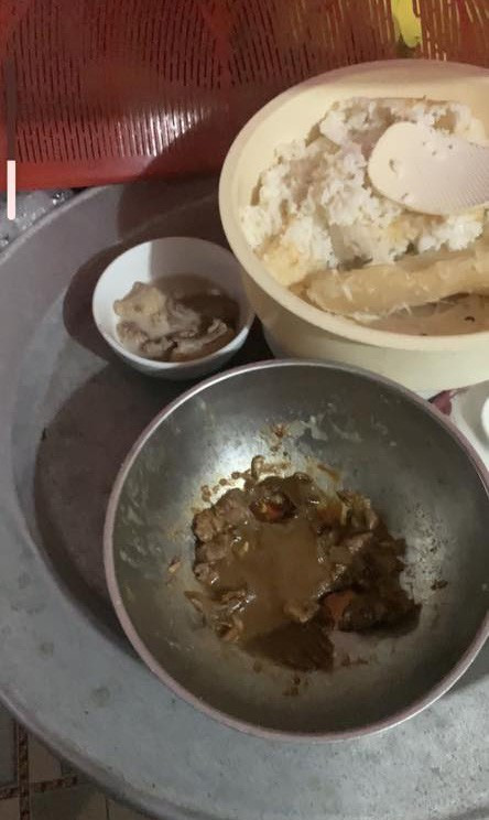 Bát bé là thịt ba chỉ rang, bát to là thịt gà rang 7 ngày.