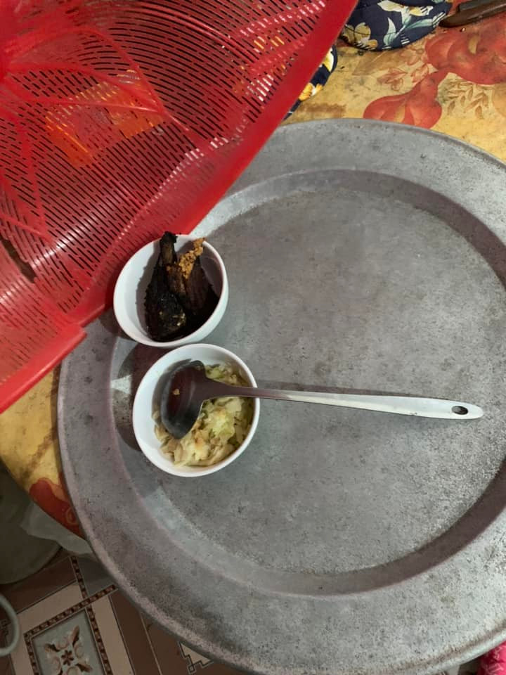 Bắp cải xào, cá kho bóng đêm từ mấy hôm trước.