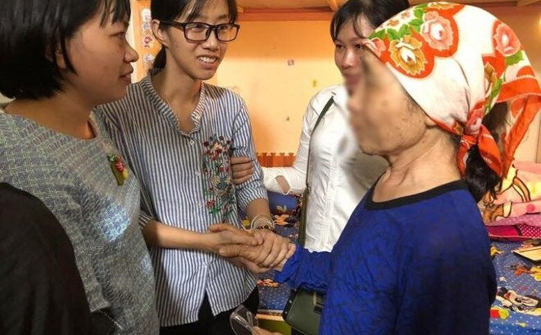 Chị Thùy Dương (đeo kính) xúc động gặp lại người được ghép giác mạc của con gái Hải An.