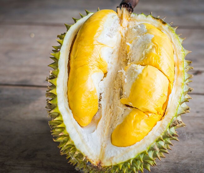 - Vỏ màu vàng sậm hoặc có bột màu vàng kem: Có thể là sầu riêng bị ép chín bằng hóa chất.
