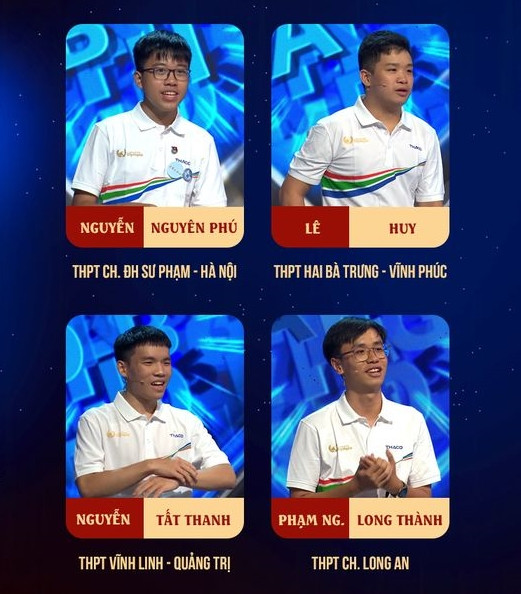 Cuộc thi chiều nay (11/8) là cuộc tranh tài của 4 nhà leo núi: Nguyễn Nguyên Phú (THPT chuyên ĐH Sư phạm Hà Nội), Lê Huy (THPT chuyên Vĩnh Phúc), Nguyễn Tất Thanh (THPT Vĩnh Linh - Quảng Trị), Phạm Nguyễn Long Thành (THPT chuyên Long An).