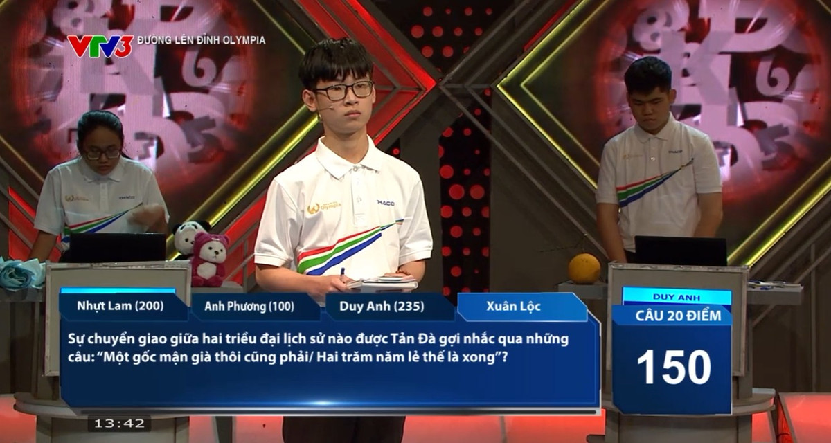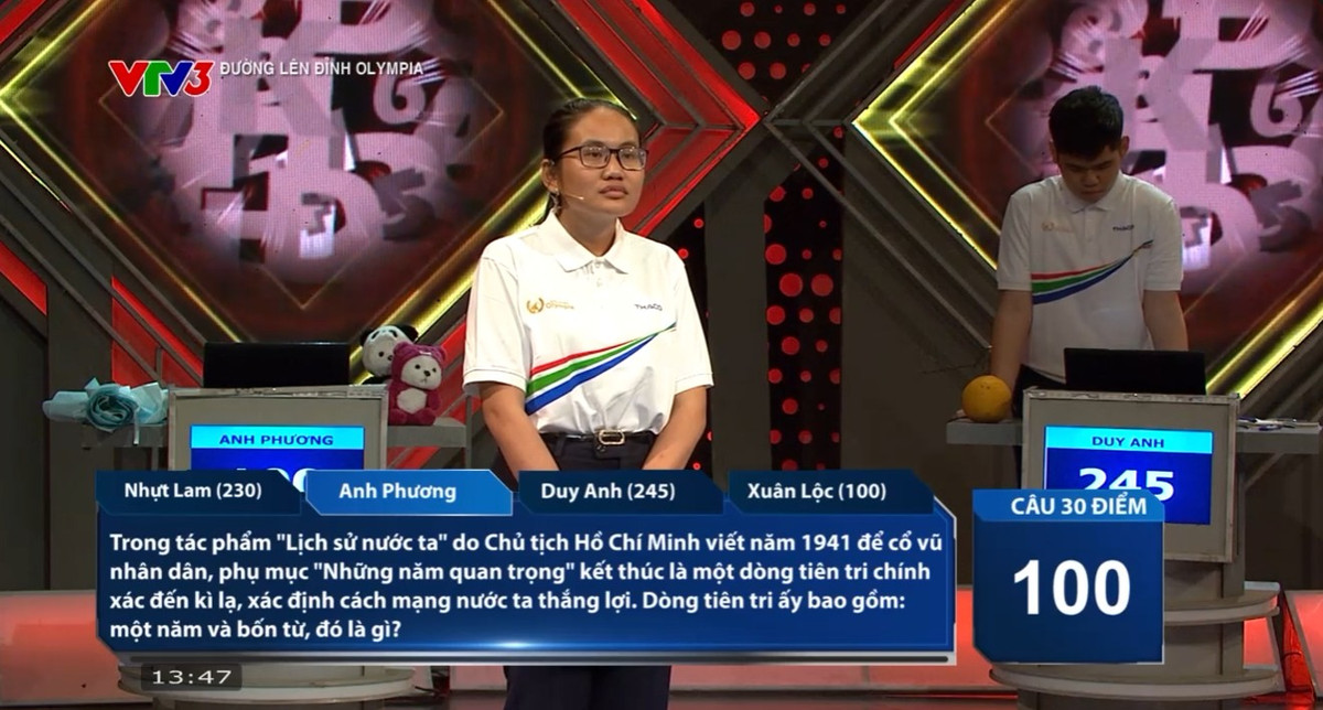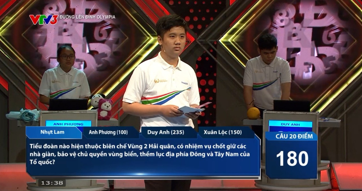 Duy Anh là người Về đích đầu tiên với 2 câu trả lời đúng, nâng tổng số điểm lên 235 điểm.