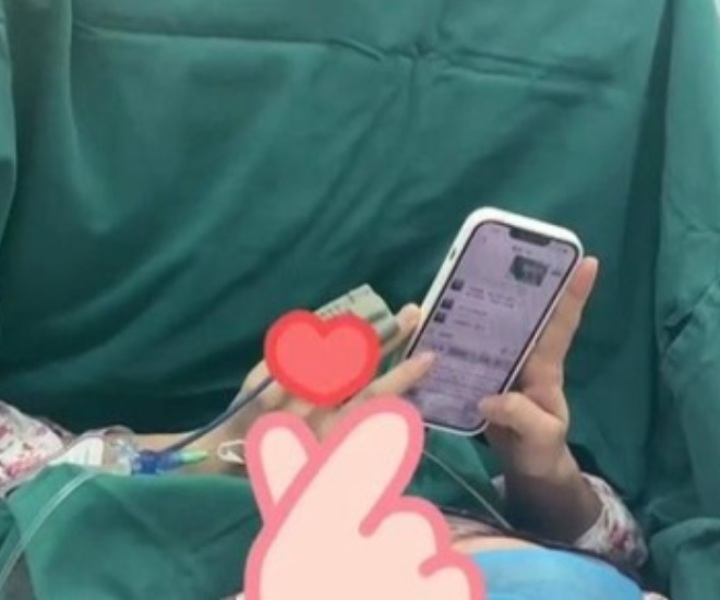 Lúc ấy, chỉ cần nghe tiếng dao kéo lách cách là đủ để tim đập loạn xạ, đầu óc suy nghĩ lung tung và tinh thần chẳng thể yên nổi. Nhưng mới đây, mạng xã hội lại được phen xôn xao trước một hình ảnh cực "đi vào lòng người" khi một sản phụ đang nằm trên bàn mổ vẫn... ung dung cầm điện thoại, chat chit với bạn bè như đang nằm spa chứ không phải đi sinh con.