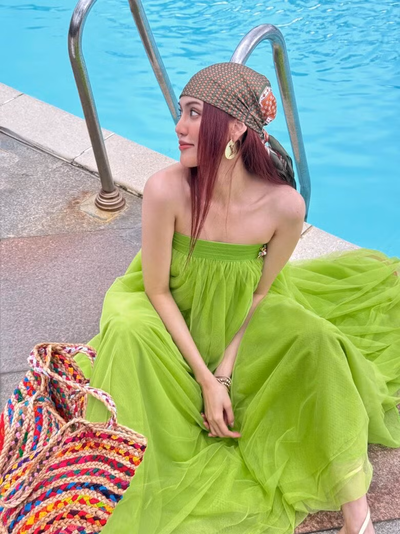 Lan Khuê cũng thích đi bơi với những set đồ thời thượng và lộng lẫy thế này đây.