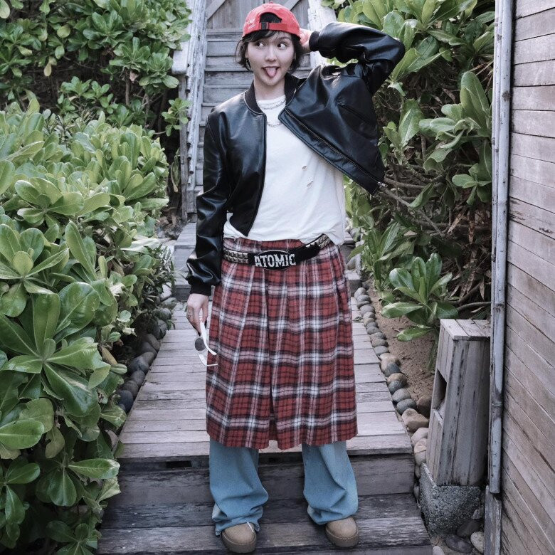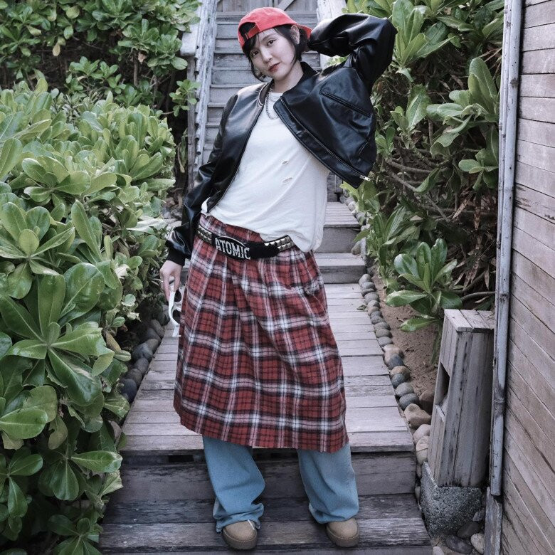 Diện áo khoác da với quần jean và váy kẻ, Hải Tú lần đầu thử sức với phong cách hip-hop chất chơi