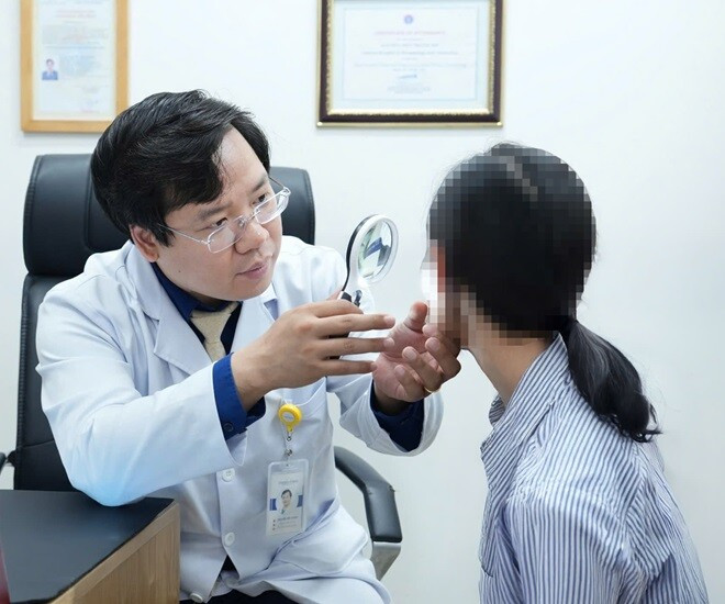 Nữ bệnh nhân tổn thương da mặt vì chấm nước chanh trị mụn. Ảnh: BSCC.