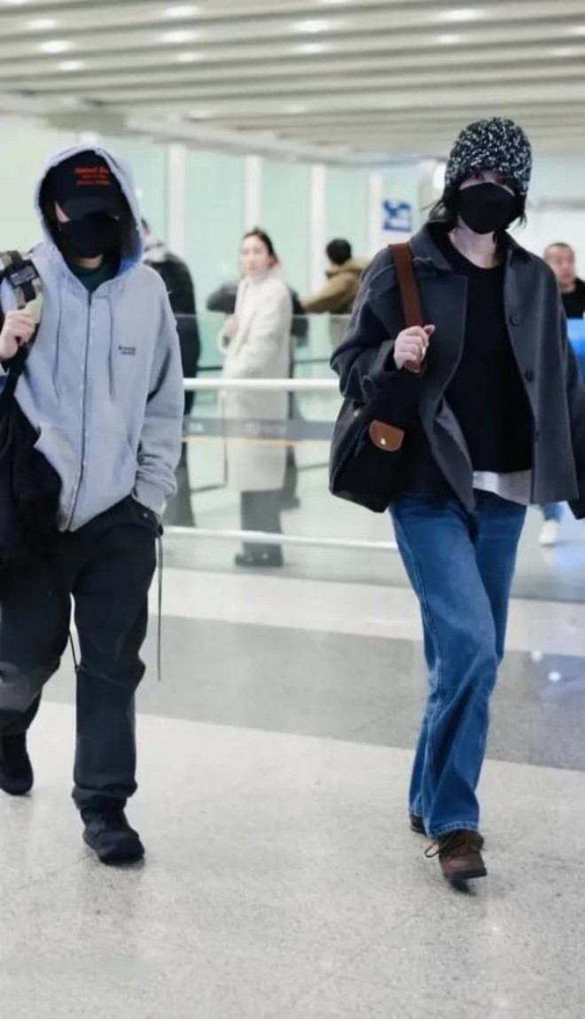 Cánh phóng viên vừa chụp được hình ảnh Tạ Đình Phong và Vương Phi tại sân bay. Cả hai ăn mặc khá đơn giản. Trong hình, Vương Phi đội một chiếc mũ, bên trong mặc áo màu đen, bên ngoài là áo khoác màu xám đậm, quần jean. Về phía Tạ Đình Phong, anh vẫn có gu quen thuộc với áo khoác kết hợp quần thụng và đội mũ che chắn mặt.