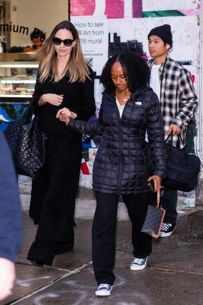 Mới đây, cánh phóng viên vừa chụp được hình ảnh Angelina Jolie cùng các con đến thăm cửa hàng thời trang mới của mình, Atelier Jolie, New York. Đi cùng cô có Pax Thiên (20 tuổi), Zahara (18 tuổi) và Knox (15 tuổi).