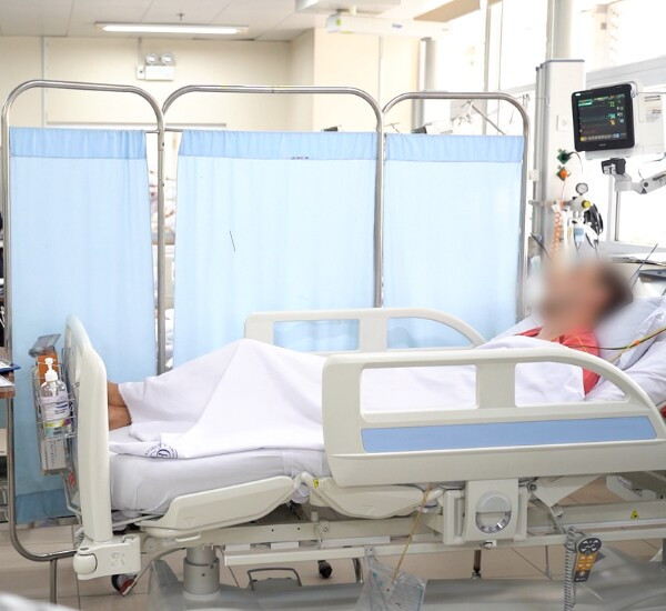 Bệnh nhân được đưa đi cấp cứu tại bệnh viện địa phương, tuy nhiên, do không có chuyển biến tích cực, sau đó bệnh nhân được chuyển đến khoa Hồi sức tích cực khu D, Bệnh viện Chợ Rẫy, để tiếp tục điều trị. Tại đây, sau khi thực hiện các kiểm tra, thăm khám và cận lâm sàng, các bác sĩ xác định bệnh nhân bị sốc nhiệt, tổn thương gan, thận kèm rối loạn tri giác.