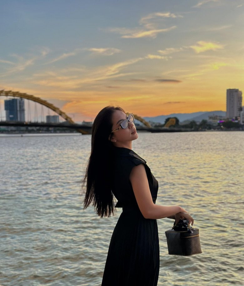 Nhật Lê sau bao năm bị nhắc tên liên hoàn trong mối tình với Quang Hải vẫn vẹn nguyên phong độ sắc vóc. Cô nàng yêu thích mái tóc dài ngang lưng và thường xuyên thả dáng ngọt trong các thiết kế đầm cocktail. Trong hình, cô mix cùng chiếc túi LV hình hộp đắt đỏ.