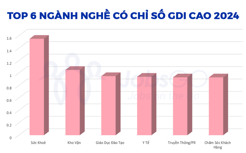Dựa trên phân tích & thống kê của JobsGO, Sức khỏe và Kho vận là hai ngành đang có tỷ lệ Nữ giới lên làm quản lý dẫn đầu với chỉ số GDI đều lớn hơn 1 (Nữ thăng tiến nhiều hơn Nam).