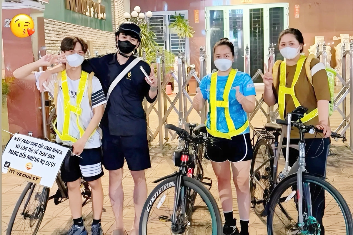 Dòng chữ "Hãy trao cho tôi chai nhựa, vỏ lon, tôi sẽ thay bạn mang đến nụ cười" trên xe đạp của nhóm đã trở thành hình ảnh quen thuộc với người dân Cần Thơ.