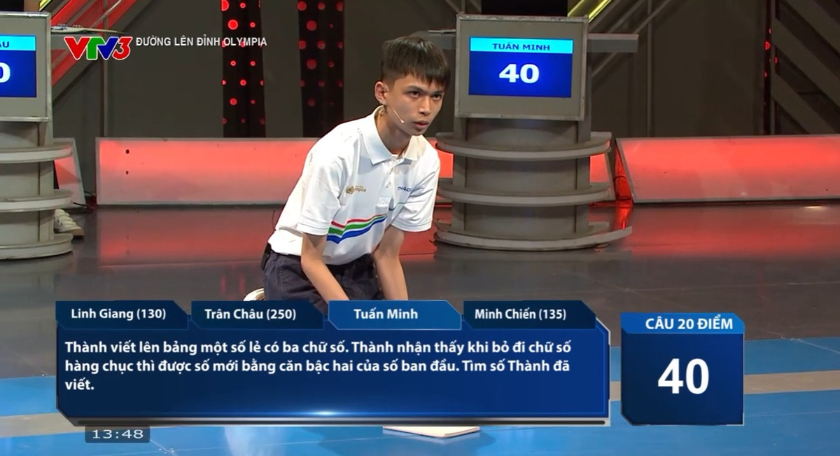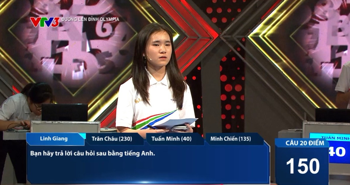 Minh Chiến là người Về đích đầu tiên nhưng không có câu trả lời nào đúng. Trân Châu 2 lần bấm chuông và có đáp án chính xác đã lấy đi 40 điểm của Minh Chiến. Linh Giang trả lời sai và bị trừ 10 điểm.