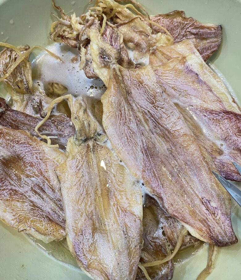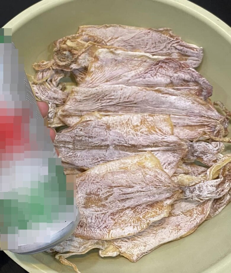 Mực khô cho vào âu hoặc chậu sạch.