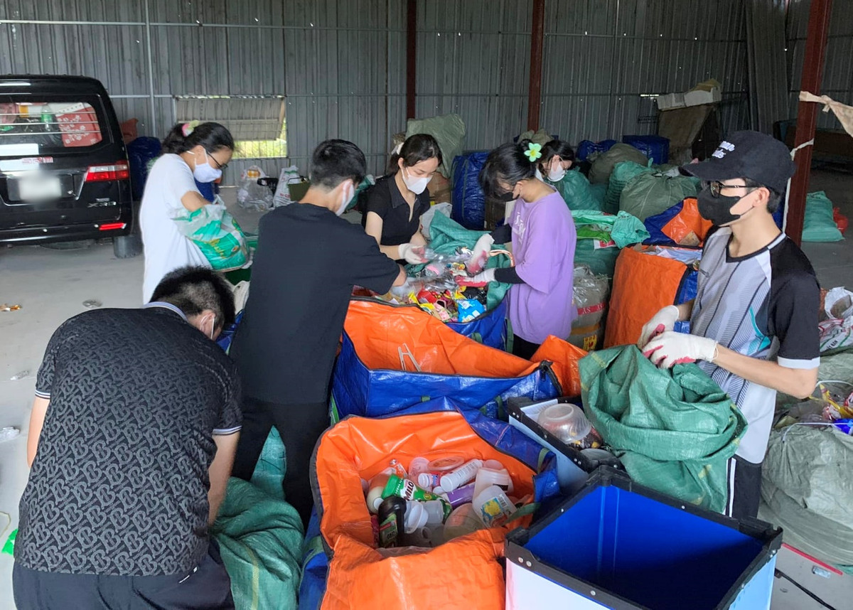 Các bạn trẻ hăng say làm công việc tái chế rác